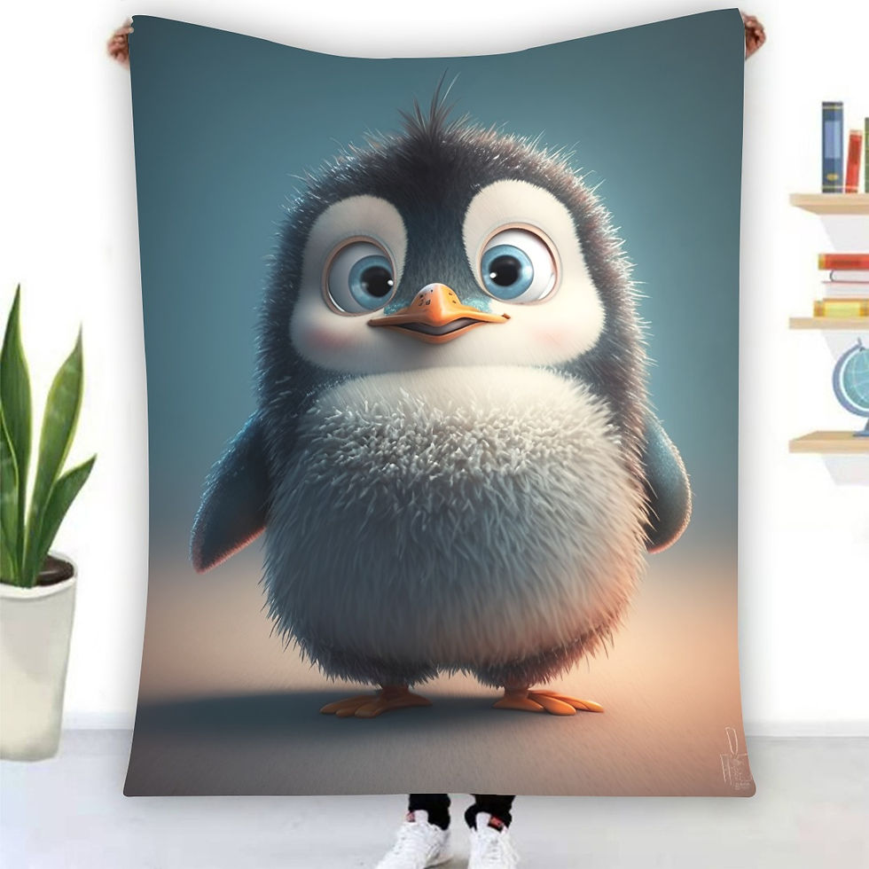 Fluffy Penguin Single-Side Print Fleece Blanket